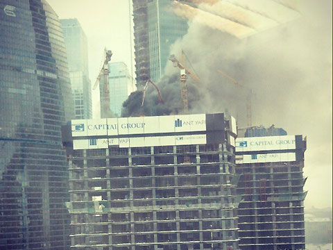 В этом же здании в апреле прошлого года горела крыша. Пожарным пришлось бороться с огнем на протяжении четырех часов. Работу спасателям осложняло то, что подниматься до 66 этажа, где разошелся огонь, им пришлось пешком.