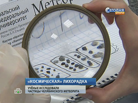 Ученые из Уральского университета, показали настоящие фрагменты челябинского метеорита. Такие же по виду камни продают в качестве сувениров особо предприимчивые граждане. Цены на сомнительный товар сравнимы со стоимостью украшений в ювелирных салонах.