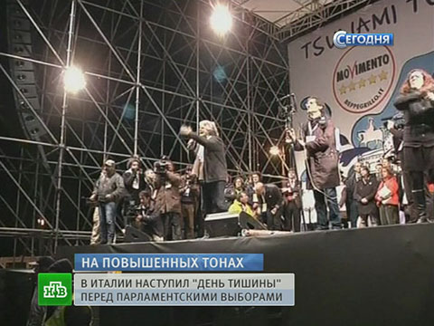 Соперничать с ним будет лидер «Движения 5 звезд», бывший комик, а сейчас оппозиционный блогер Беппе Грилло. Предвыборная программа Грилло очень проста: правительство и парламент разогнать, здания, в которых они заседают, взорвать, а все законы, которые создают коррумпированные политики, упразднить.