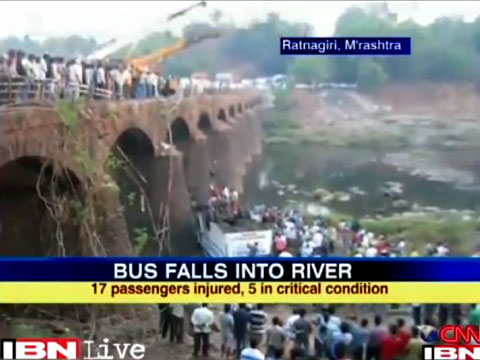 Жертвами ДТП, которое произошло сегодня на западе Индии, стали более 30 человек. Авария произошла в 350 км к югу от Бомбея. Там автобус, который следовал из Гоа в Мумбаи, на полном ходу сорвался с моста.