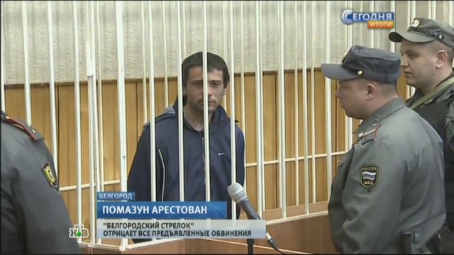 Многие белгородцы пришли убедиться, что Сергей Помазун, расстрелявший шесть человек, действительно задержан и будет арестован. Впрочем, в том, что именно так все и будет, никто не сомневался, ведь обвинения ему предъявлены очень серьезные. Это убийство, хищение оружия с применением насилия и, наконец, нападение на полицейского. И вот по решению Свердловского районного суда Белгорода Сергея Помазуна официально взяли под стражу. Сам белгородский стрелок против ареста не возражал.