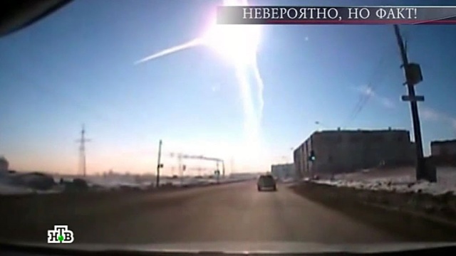На видеосъемке можно различить, как метеорит еще в воздухе сталкивается с неким неопознанным телом.