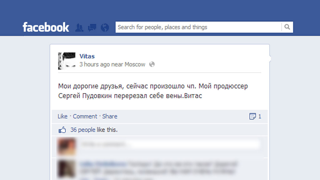 Витас: «Мои дорогие друзья, сейчас произошло ЧП. Мой продюсер Сергей Пудовкин перерезал себе вены. Витас».