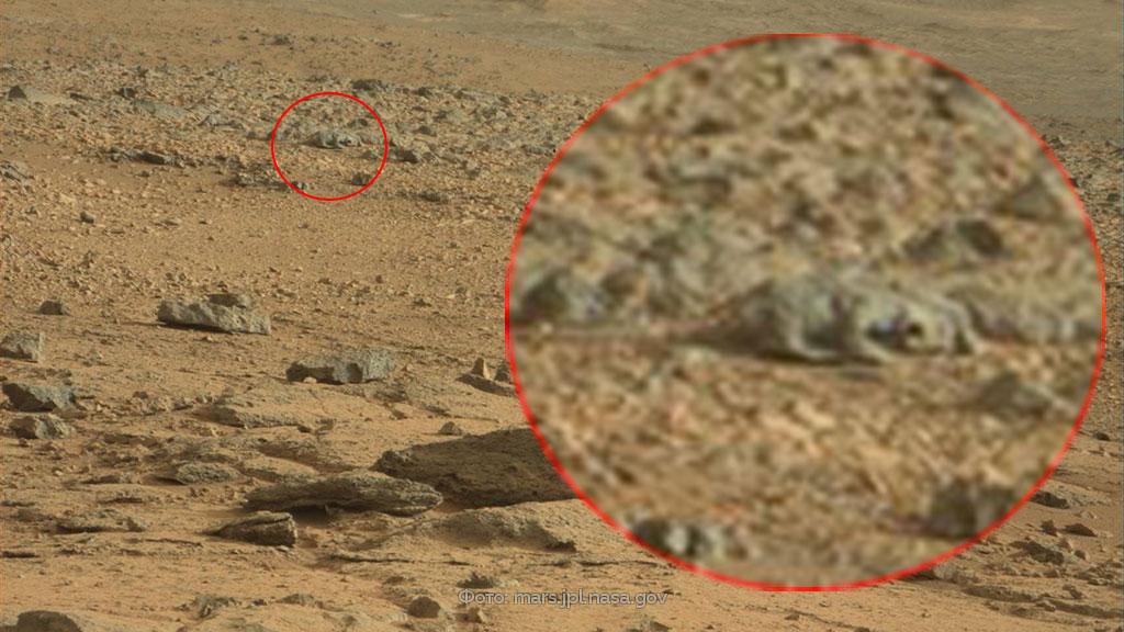 Странное существо разглядел на снимке, сделанном марсоходом Curiosity, житель Японии. Среди безжизненных камней Красной планеты отчетливо выделяются очертания некоего грызуна или ящерицы — с хвостом и четырьмя лапами. Японец опубликовал странное фото на сайте, посвященном НЛО и прочим загадочным явлениям.