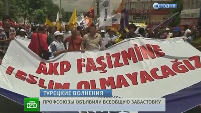 Премьер-министр Турции пытается сблизиться с взбунтовавшимся народом, но число противников растет. В стране проходит общенациональная забастовка.