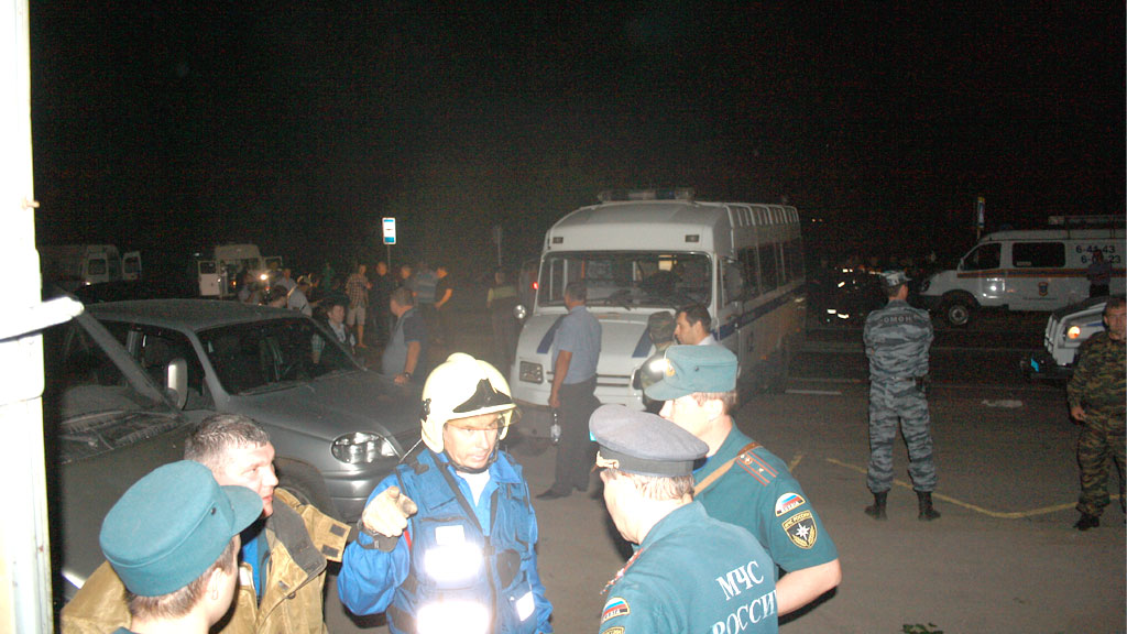 МЧС завершает обследование поселка Нагорный, опустевшего после взрывов и пожара на полигоне.