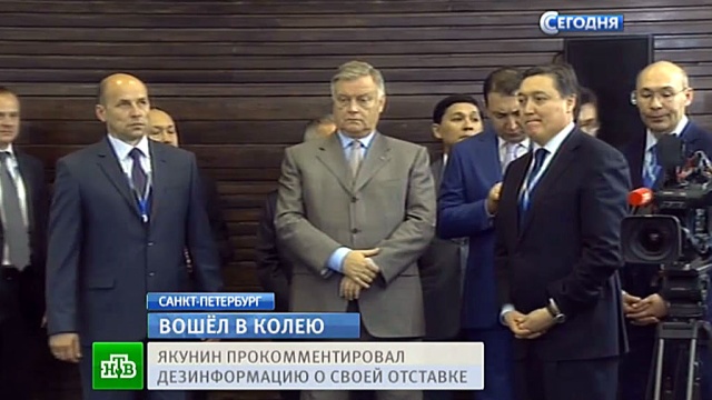 Как передает корреспондент НТВ Дмитрий Новиков, отправленный вчера фальшивым распоряжением премьера в фальшивую отставку Владимир Якунин сегодня весь день в