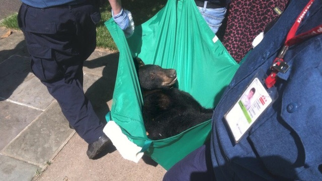 Американский черные мишка заплутал в улицах Вашингтона. Спасатели усыпили его и вывезли обратно в лес.