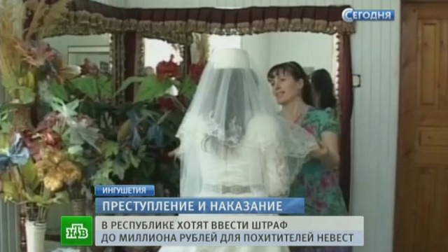 В Ингушетии может появиться закон, по которому попытка украсть девушку может обойтись жениху в несколько сотен тысяч рублей. Для большинства россиян словосочетание «кража невесты» — это бессмертная комедия Леонида Гайдая. Но «Кавказская пленница» вышла на экраны в 1967 году, а в Ингушетии до сих пор эта проблема — одна из самых острых, передает корреспондент НТВ Георгий Гривенный.