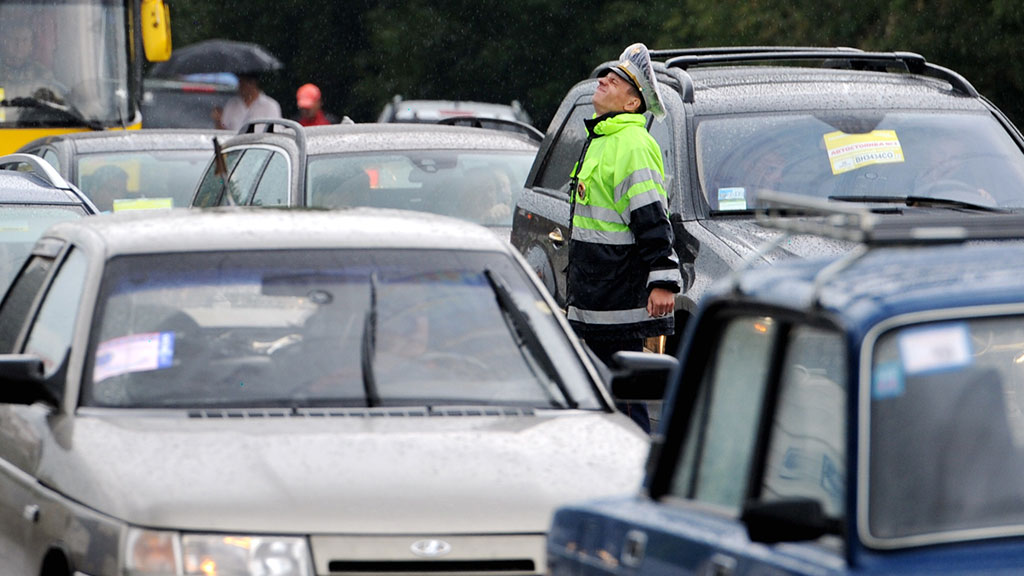 В Москве вот уже несколько часов не прекращается сильный дождь. По данным столичных властей, движение на дорогах парализовано.