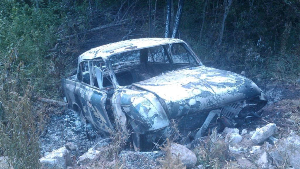 Салон автомобиля полностью прогорел, а внутри полицейские нашли четыре тела. Как полагают полицейские, один из погибших — ребенок.