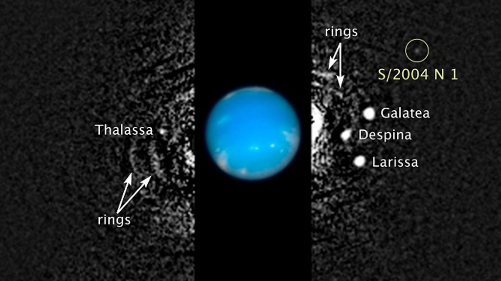 Найденный объект получил временное название S/2004 N1, а его диаметр составляет около 19 км. Как уточнили в NASA, речь идет о самом маленьком спутнике Нептуна. Он находится на расстоянии примерно 105,2 тысяч км от Нептуна между орбитами двух других лун этой планеты — Лариссы и Протея, передает сайт NASA.