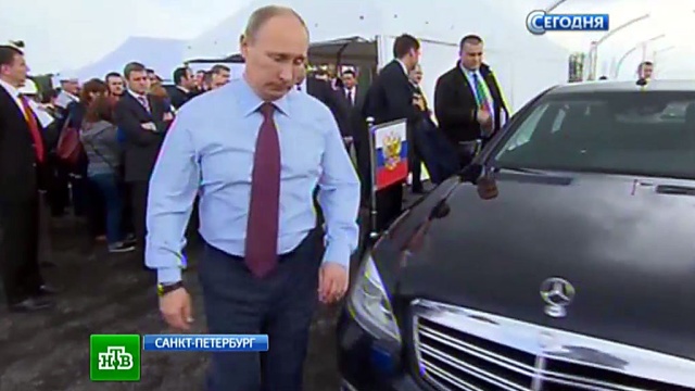 На открытие по новой дороге приехал за рулем автомобиля и Владимир Путин. Корреспондент НТВ Николай Булкин передает из