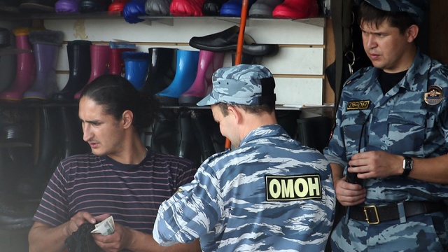 Масштабные проверки на столичных рынках проходят уже вторую неделю. Сотрудники полиции, ФМС и других правоохранительных органов организуют рейды по торговым точкам в поисках нелегальных мигрантов. Задержанных отправляют в палаточный лагерь на востоке Москвы, где они ожидают депортации.