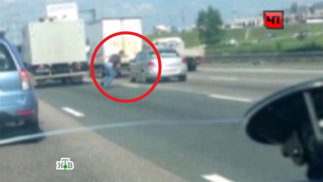 В распоряжении НТВ оказались кадры, снятые одним из водителей, также оказавшихся в пробке на МКАД. Он снял побег заключенных из автозака.