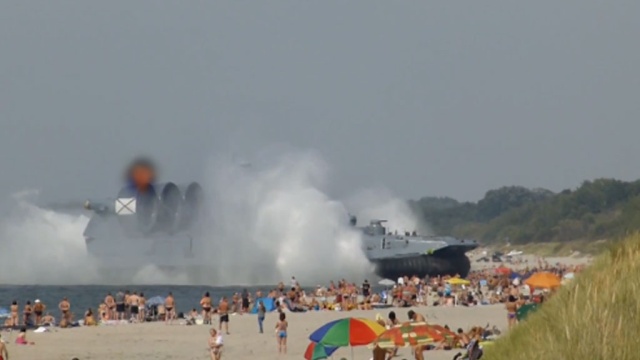 На днях жителей Калининграда, отдыхающих на пляже, напугал огромный корабль на воздушной подушке. Капитан «Зубра» вывел судно на берег, не обращая внимания на сотни загорающих и купающихся рядом калининградцев. Отдыхающие почтительно расступились, никто не пострадал. С корабля спустились десантники, оцепили корабль и просили жителей не приближаться к нему.