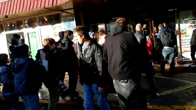 ОМОН прибыл на подкрепление к полиции после того, как агрессивно настроенная часть протестующих с националистическими лозунгами набросилась на случайного мужчину кавказской внешности и устроила погром в торговом доме «Бирюза», в котором тот пытался спрятаться. Около 20 человек выбили двери ТЦ, напали на охрану и разбили несколько витрин. После этого в торговом комплексе начался пожар.