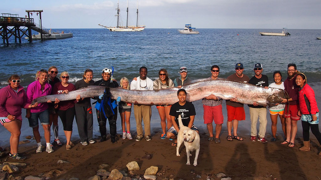 Огромную рыбу-змею обнаружили в водах Тихого океана близ берегов Калифорнии. Длина этого чудовища составляет примерно 5 метров. Гигантского монстра случайно увидела инструктор Жасмин Сантана.
