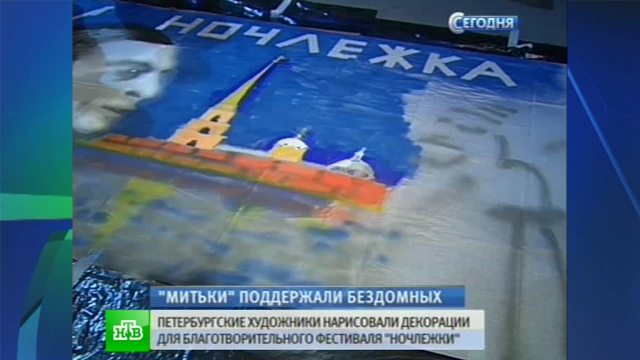 Митьки нарисовали декорации для фестиваля НочлежкаFest. Так известные петербургские художники Дмитрий Шагин, Николай Васильев и Андрей Кузьмин внесли свой вклад в поддержку людей без постоянного места жительства.