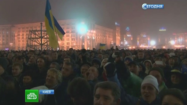 Вчерашние протесты завершились потасовками демонстрантов с бойцами спецподразделения «Беркут» и возведением несанкционированного палаточного лагеря, который милиция всю ночь безуспешно пыталась разогнать. За событиями на Украине следит корреспондент НТВ Яна Леонтьева.
