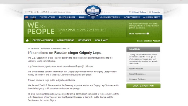 На сайте Белого дома США собрано более 100 тысяч подписей в поддержку популярного российского певца Григория Лепса. Ранее Вашингтон запретил исполнителю въезд на свою территорию, причислив его к мафиозным структурам.