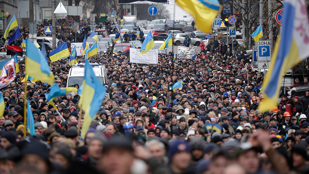 Ранее сегодня многотысячная толпа сторонников евроинтеграции снесла металлические ограждения на Майдане независимости и, заполнив площадь, стала скандировать «Революция!». Милиция, завидев приближающуюся колонну, разбежалась.