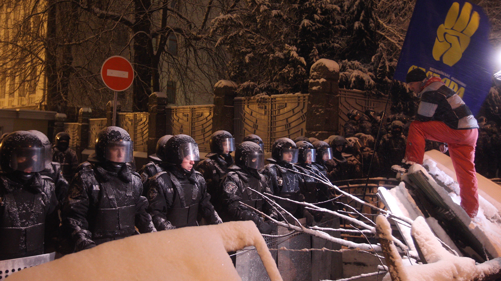 По сообщениям местных СМИ, на перекрестке Институтской улицы и Крепостного переулка люди в форме работников МЧС разбирают баррикады и складывают конструкции в самосвал. За все этим наблюдают бойцы внутренних войск и «Беркута», но столкновений с митингующими пока нет.