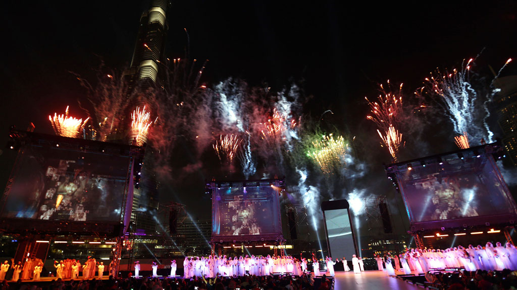 После шестиминутного шоу запуск фейерверков будет продолжен с небоскреба Бурдж Халифа.