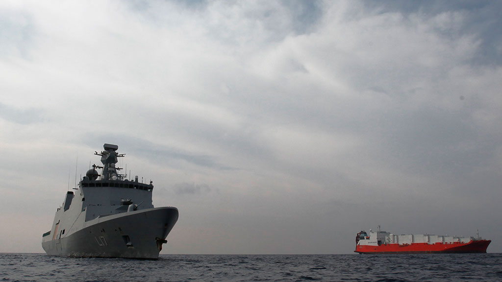 Норвежский военный представитель Ларс Магне Ховтун сообщил, что сухогрузы и два корабля охраны готовы в любой момент зайти в сирийский порт Латакия для погрузки контейнеров с химическим оружием.