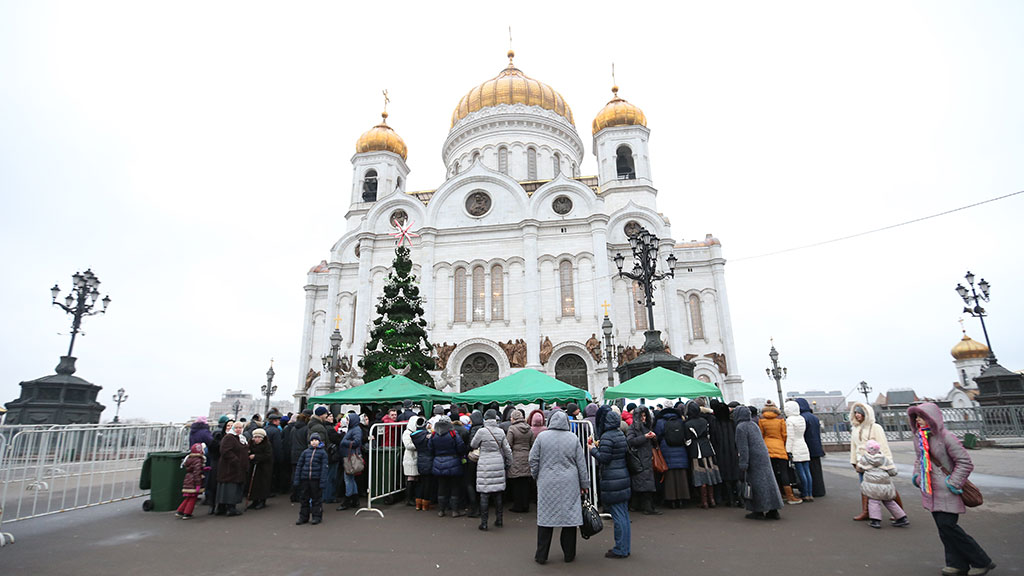 Примерно 14 тысяч человек стоят в очереди, чтобы попасть в храм Христа Спасителя и поклониться Дарам волхвов, привезенных в Москву с Афона. Паломникам необходимо прождать около