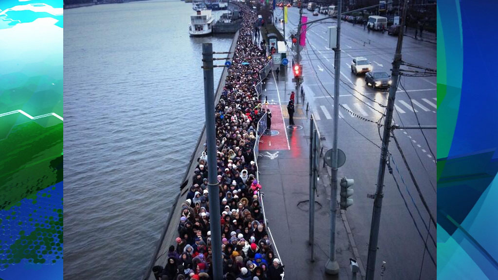 Представитель оргкомитета: «Средняя продолжительность нахождения в очереди может составить до девяти часов. По состоянию на 11:00 конец очереди находится за Новоандреевским мостом. Желающим приложиться к святыне необходимо проехать до станции метро „Фрунзенская“, спуститься пешком до набережной