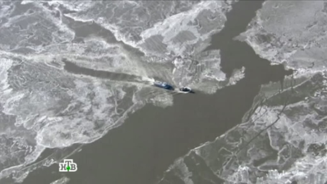 Из-за холодов, сковавших США, на реке Гудзон в Нью-Йорке застрял паром.