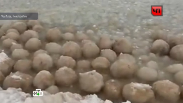 Блог Sploid даже сравнил диковинку с яйцами пришельцев из мистических триллеров. Температура в регионе держится на отметке минус 20 градусов по шкале Цельсия, поэтому шары не будут таять еще несколько дней.