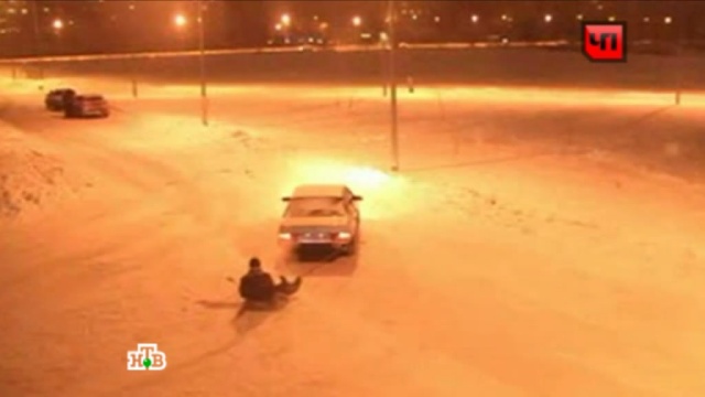 Камеры наблюдения зафиксировали ВАЗ с привязанными к заднему бамперу санями. В момент езды на санках сидит человек. Такой способ перевозки, по мнению сотрудников ГИБДД, мог быть опасен для жизни и здоровья человека.