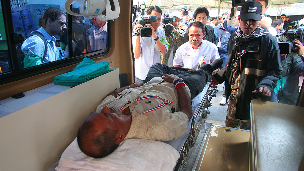 Отметим, в минувшую пятницу в Бангкоке прогремел еще один взрыв, направленный против демонстрантов. Инцидент произошел во время прохождения многотысячной колонны людей. Погиб один человек, еще около 40 пострадали.Протестующие добиваются отставки исполняющей обязанности