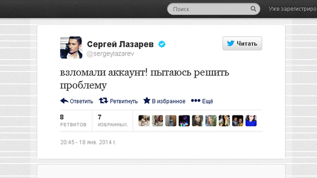 Звезда шоу-бизнеса Сергей Лазарев оказался жертвой хакера. Аккаунт певца в социальной сети Twitter взломали.
