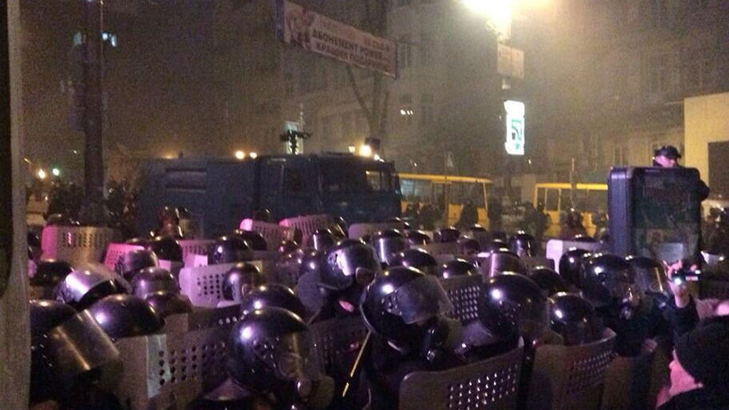 В центре Киева продолжаются беспорядки. Пыл демонстрантов не охладил даже водомет.