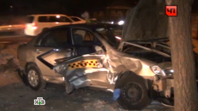 Момент столкновения запечатлел видеорегистратор, установленный в микроавтобусе. От удара такси выбросило с проезжей части — легковушка врезалась в дерево. Машину покорежило так сильно, что спасателям пришлось вырезать таксиста из машины с помощью специального оборудования.