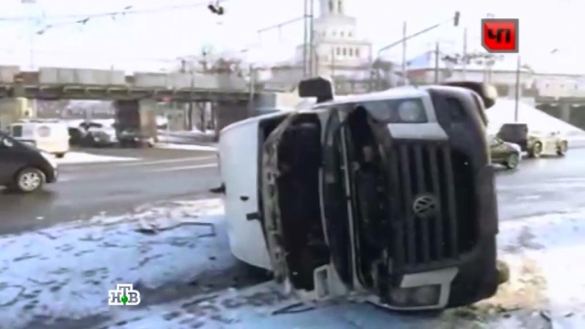 В центре Москвы четыре человека получили ранения в результате столкновения кроссовера Lexus и маршрутного такси.