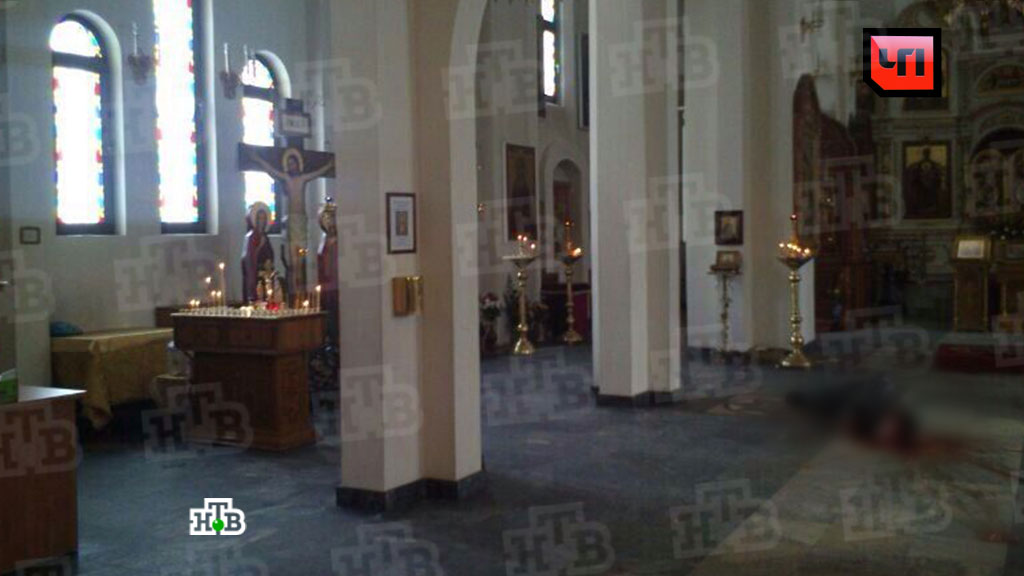 На снимке виден иконостас, рядом с которым лежит убитый человек. Это тот самый