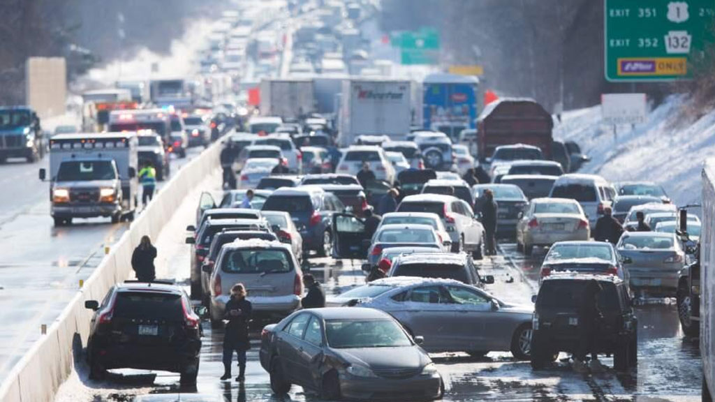 Первая крупная авария произошла на обледеневшем участке шоссе в районе города Бенсейлем, неподалеку от Филадельфии — 75 легковушек и несколько грузовиков поочередном столкнулись друг с другом. На другом участке той же трассы произошло второе массовое ДТП — там столкнулись около трех десятков автомобилей.