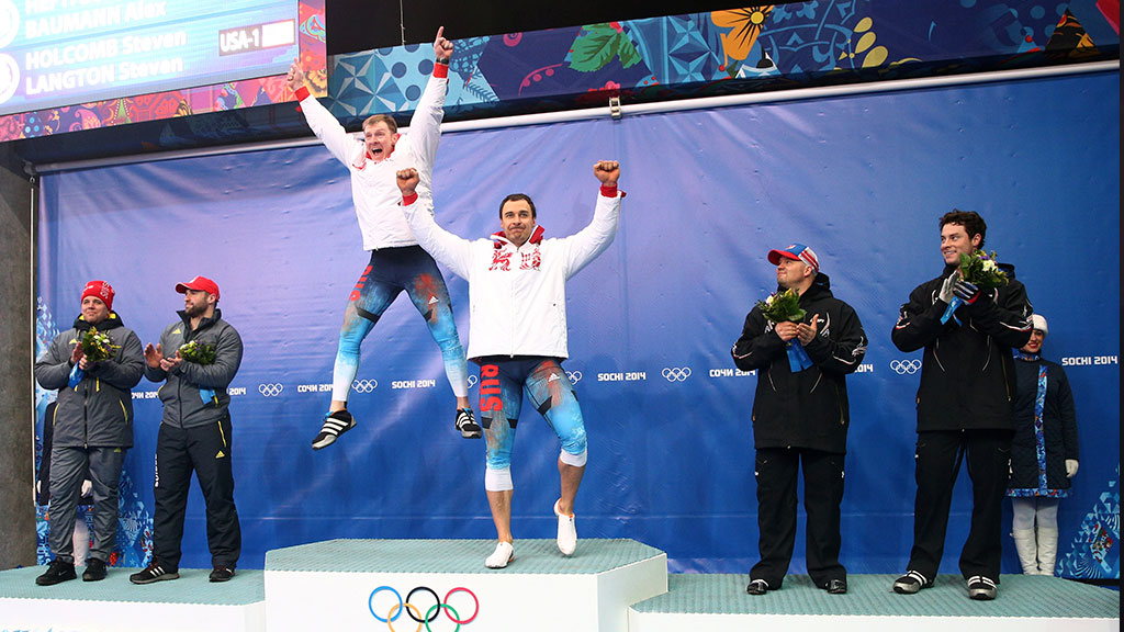 Российские бобслеисты били рекорды скорости на новом олимпийском желобе, не обращая особого внимания на конкурентов. 66 сотых секунды — колоссальный по меркам бобслея отрыв от занявших второе место швейцарцев.