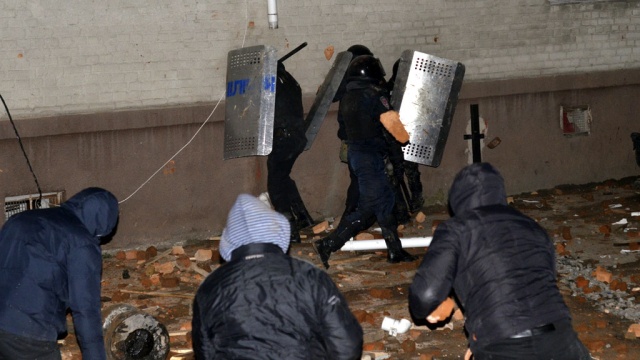 В МВД Украины отчитались о первой жертве беспорядков, которые охватили центр города в четверг.
