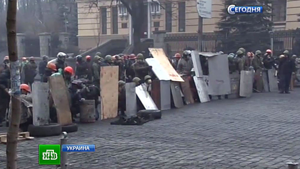 На улицах украинской столицы, близких к правительственному кварталу, закрываются магазины и кафе. Мобильная связь в городе работает с перебоями.