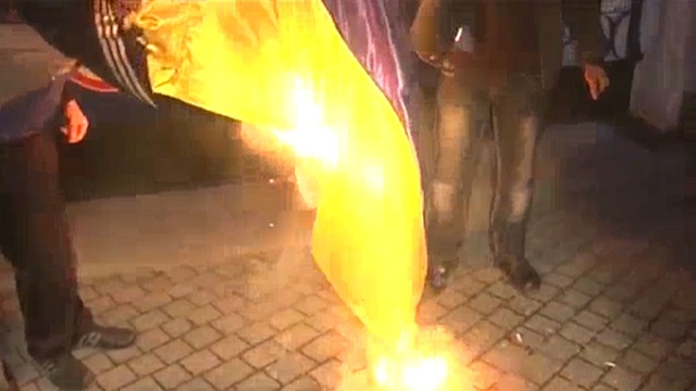 В завершении демонстрации его участники сожгли флаг Украины. Соответствующая видеозапись появилась в Интернете.