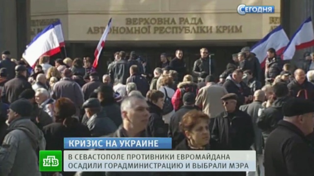Стихийное возмущение горожан вызвало решение Верховной рады Украины об отмене так называемого закона о языковой политике, который устанавливал официальный статус русского языка. Прямо на митинге севастопольцы избрали своим мэром местного предпринимателя Алексея Чалого — гражданина России. Прежний глава администрации сам подал в отставку и вышел из Партии регионов. Нового мэра Севастополя завтра должен узаконить городской совет. Это противоречит Конституции Украины, но в последние дни в стране, кажется, никто не обращает внимания на юридические несоответствия.