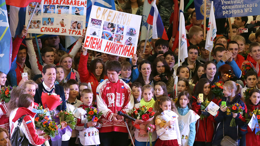 Самолет с победителями приземлился в начале десятого вечера по московскому времени. Чтобы журналисты и болельщики не растерзали атлетов, их отгородили специальной лентой — мера необходимая, потому что все наши спортсмены теперь действительно национальные герои и звезды. Олимпийский пантеон олимпийский пополнил такие спортсмены, как Виктор Ан, Аделина Сотникова, Юлия Липницкая и многие другие. Всех их встречали с песнями, плясками и даже с