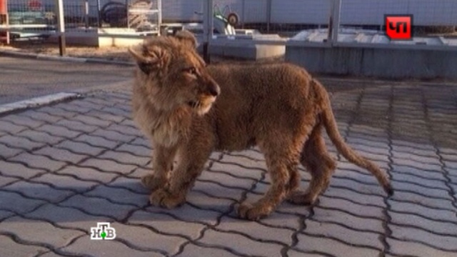 В подмосковной Балашихе прохожие и автолюбители обнаружили львенка, гуляющего по улицам города. Огромную кошку на камеру мобильного телефона снял кто-то из местных жителей.