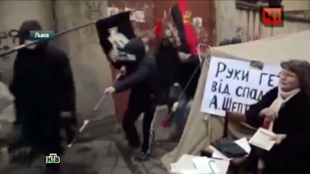 От слов они очень быстро перешли к делу. Еще в самом начале своего шествия радикалы заявили, что решили расправиться со всеми российскими предприятиями, которые расположены во Львове. Выкрикивая националистические лозунги, боевики громили все на своем пути — разбивали витрины магазинов, окна банков, отелей, отделений почты, центральный телеграф. А некоторые здания забросали светошумовыми гранатами.