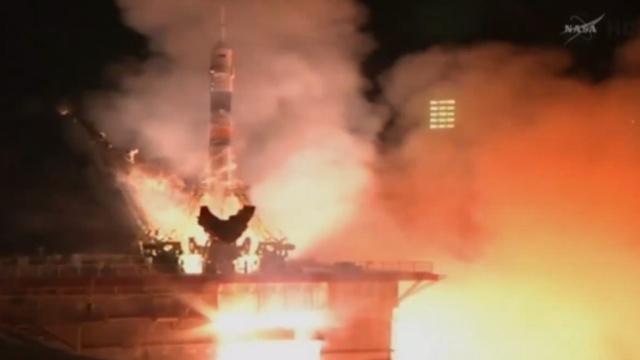 Российский корабль «Союз» с интернациональным экипажем на борту стартовал с Байконура к Международной космической станции.